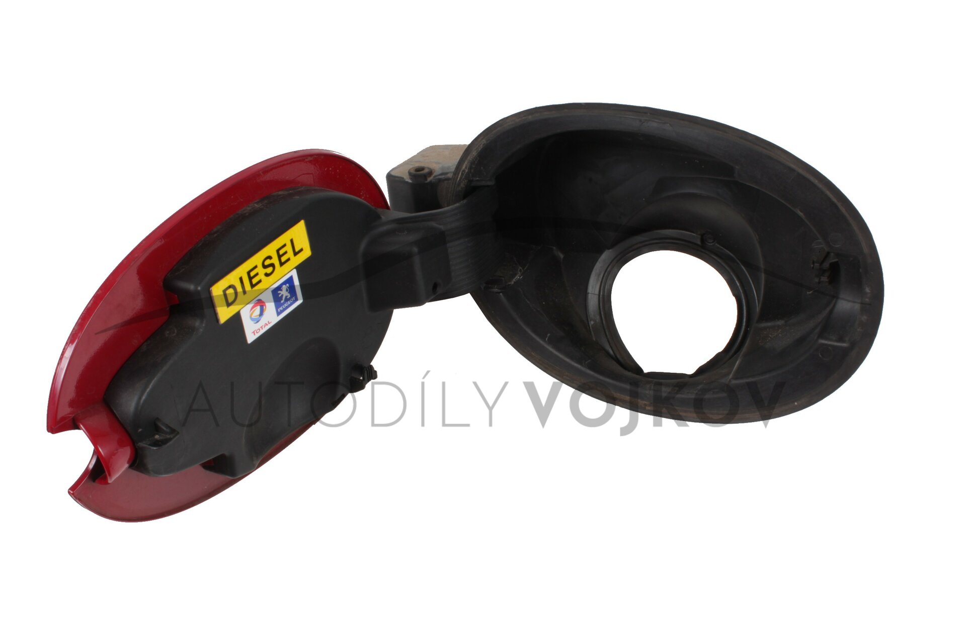 Dvířka nádrže s kloubem a miskou.