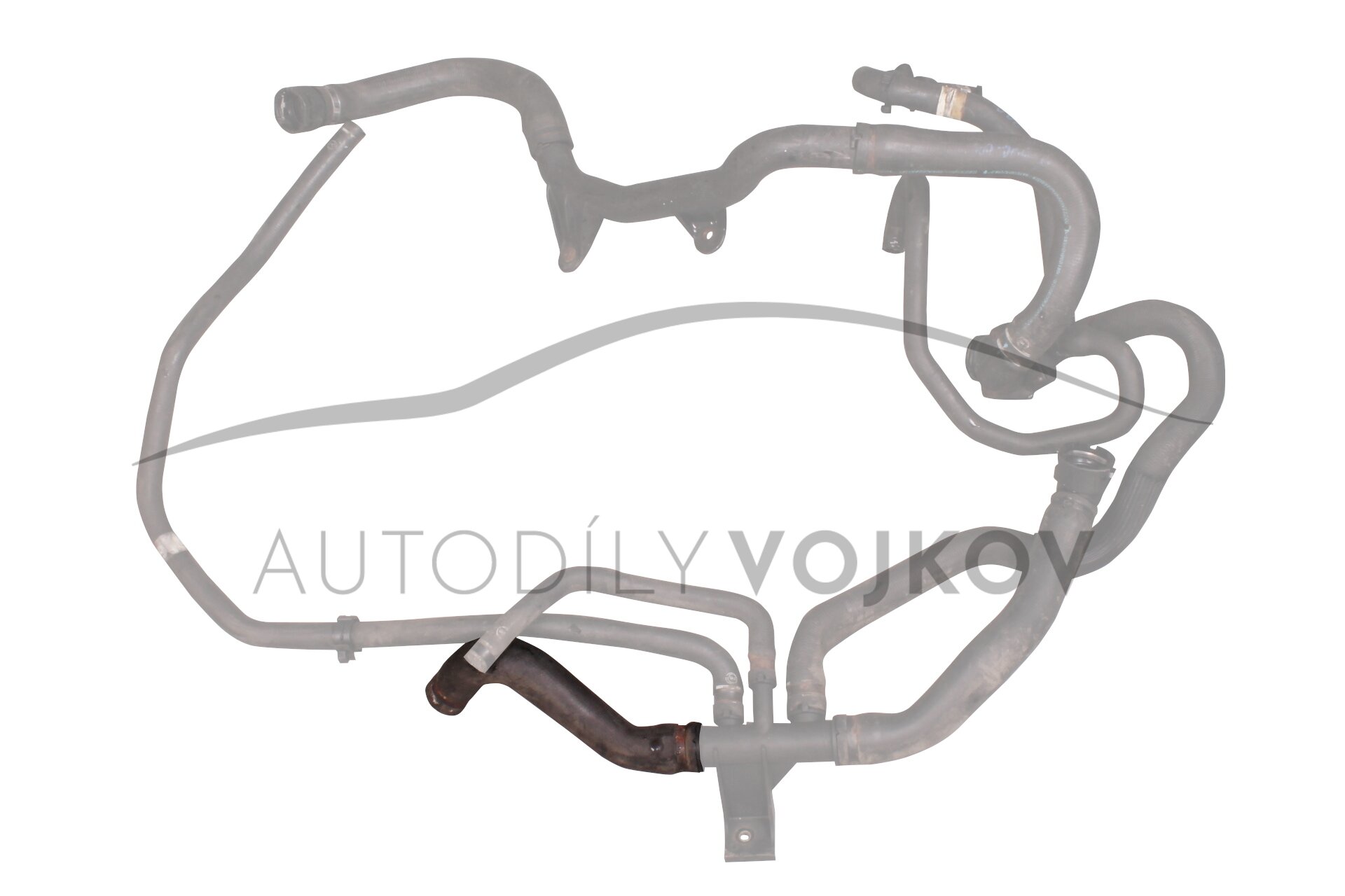 umístění: od vodního čerpadla ke spodní plastové spojce