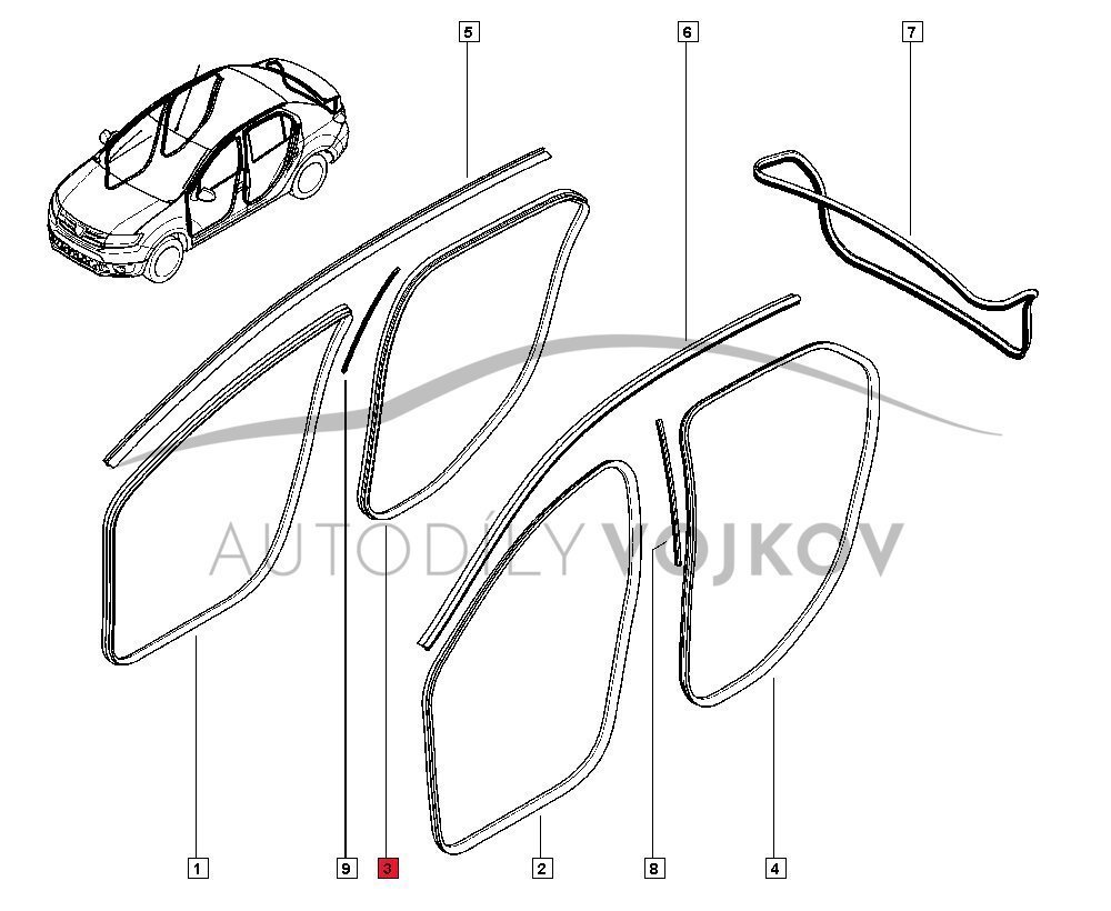 Těsnění pravých zadních dveří