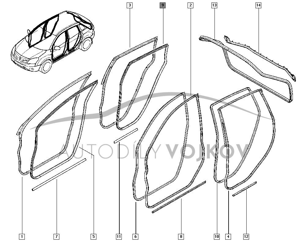 Těsnění pravých zadních dveří vnitřní
