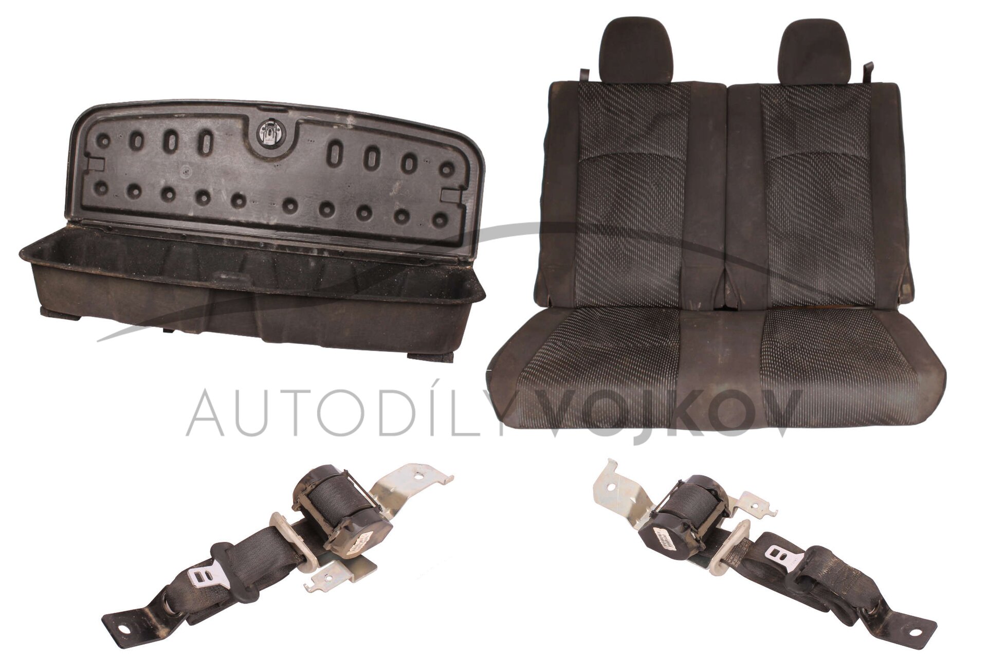 2x sedačka podsedák, kryt sedaček, vana kufru, 2x pás zámek pásu