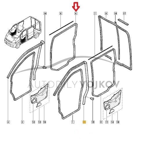 těsnění posuvných dveří - pravé